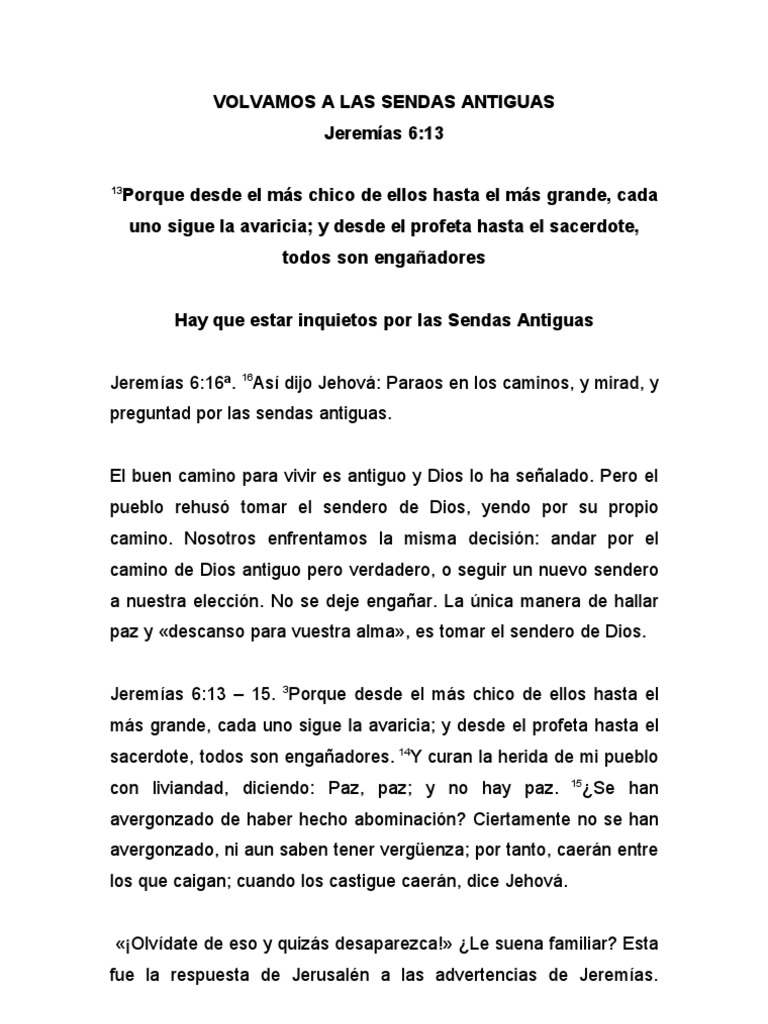 Volvamos A Las Sendas Antiguas Evangelio Real