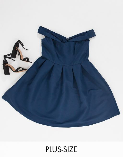 Chi Chi London Plus Bardot Midi Dress In Navy Asos