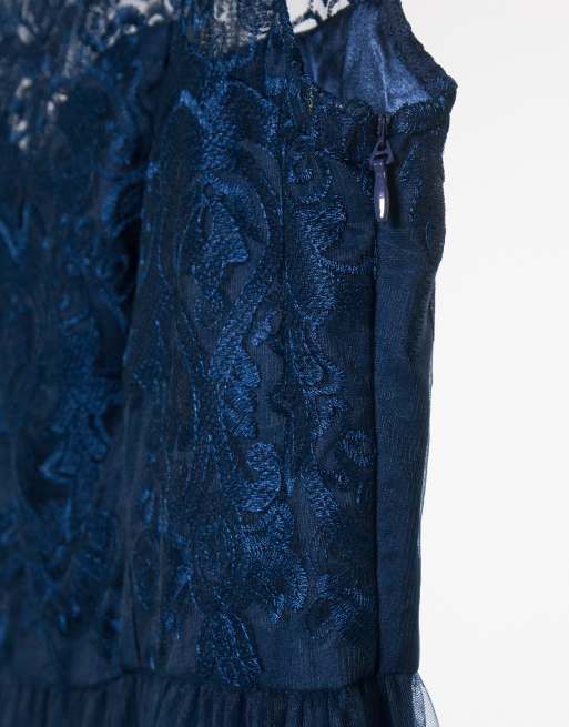 Chi Chi London Ariella Bardot Lace Midi Dress Navy Littlewoodsireland Ie