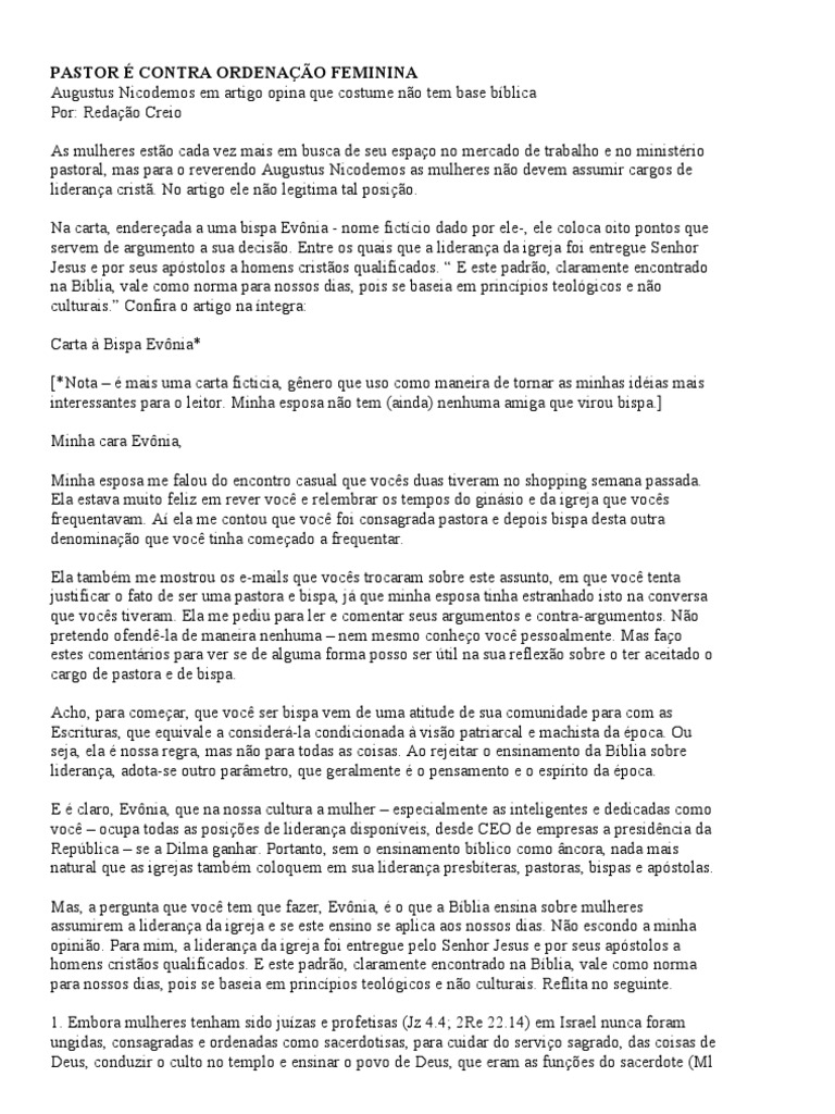 Pastor É Contra Ordenação Feminina | Bíblia | Machismo