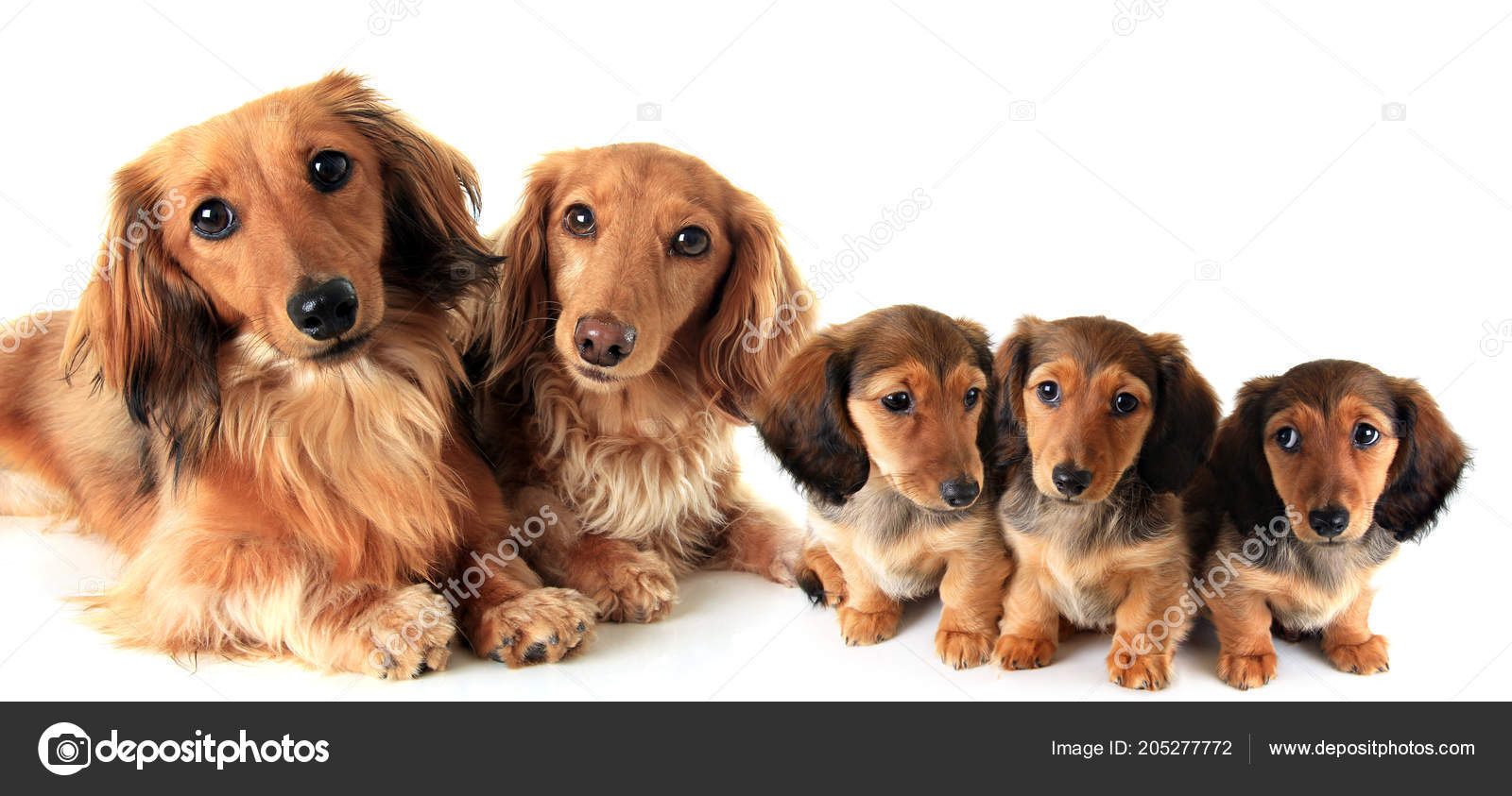 Pictures Weiner Dogs Long Hair Two Longhair Purebred Dachshund Dogs Puppies Studio Isolated White Stock Photo C Hannamariah 205277772
